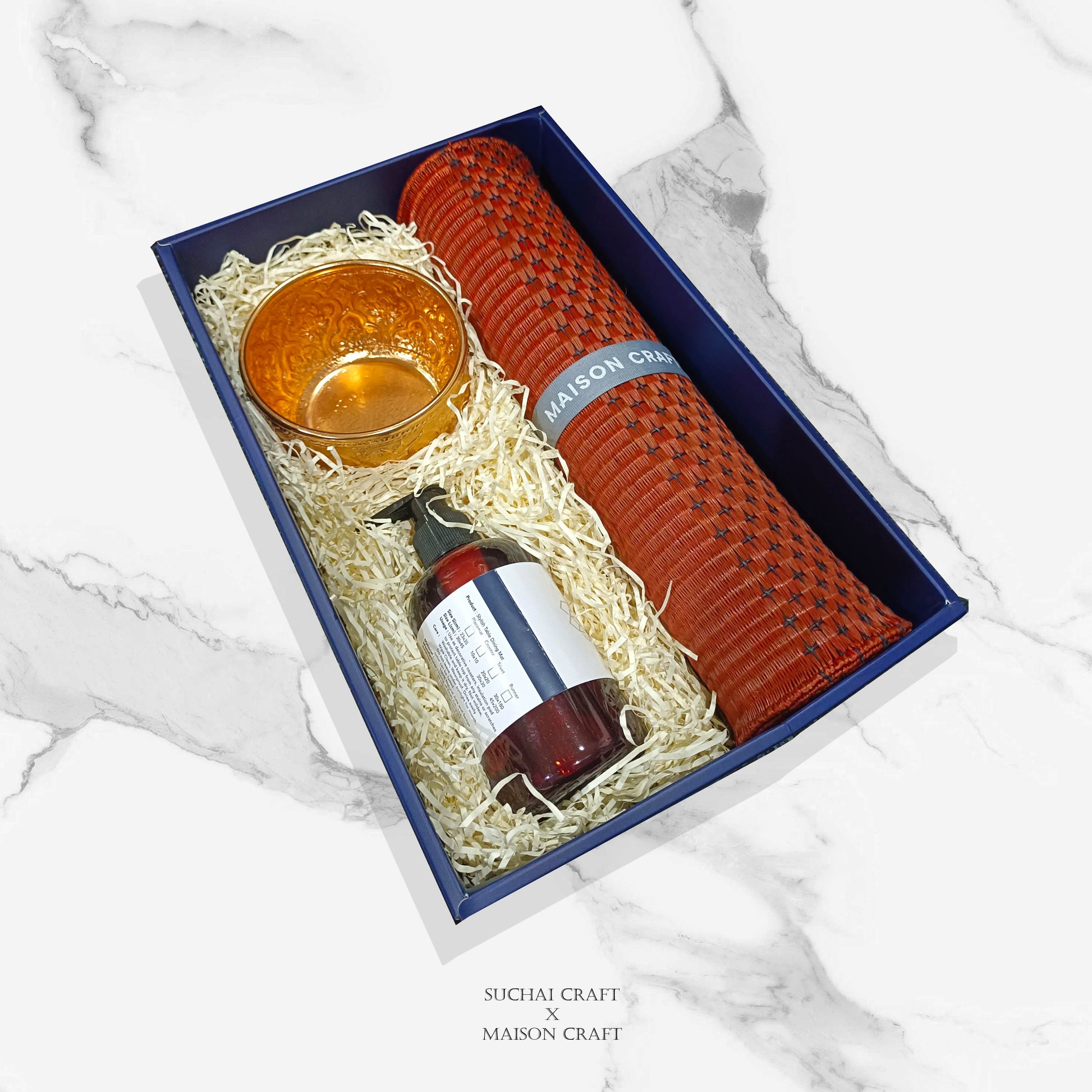 Include: Placemat 2 pieces, organic rice oil liquid soap 1 piece, aluminium bowl 1 piece