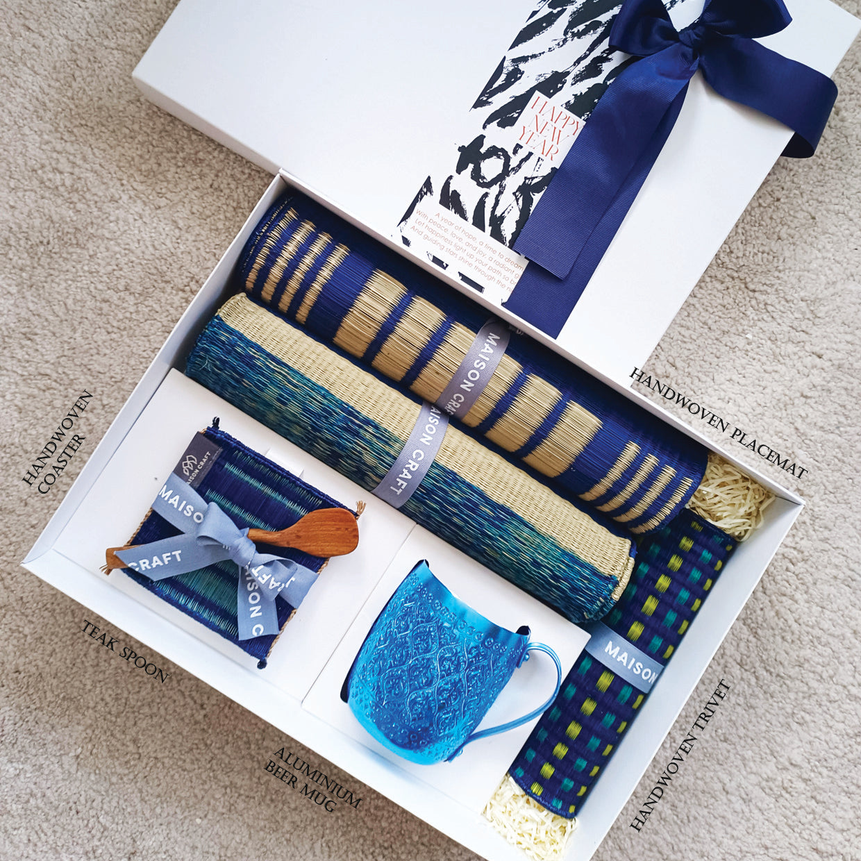 Include: Placemat 2 piece, Coaster 2 pcs, beer mug 1 piece, Teaspoon 1 piece, trivet 1 piece