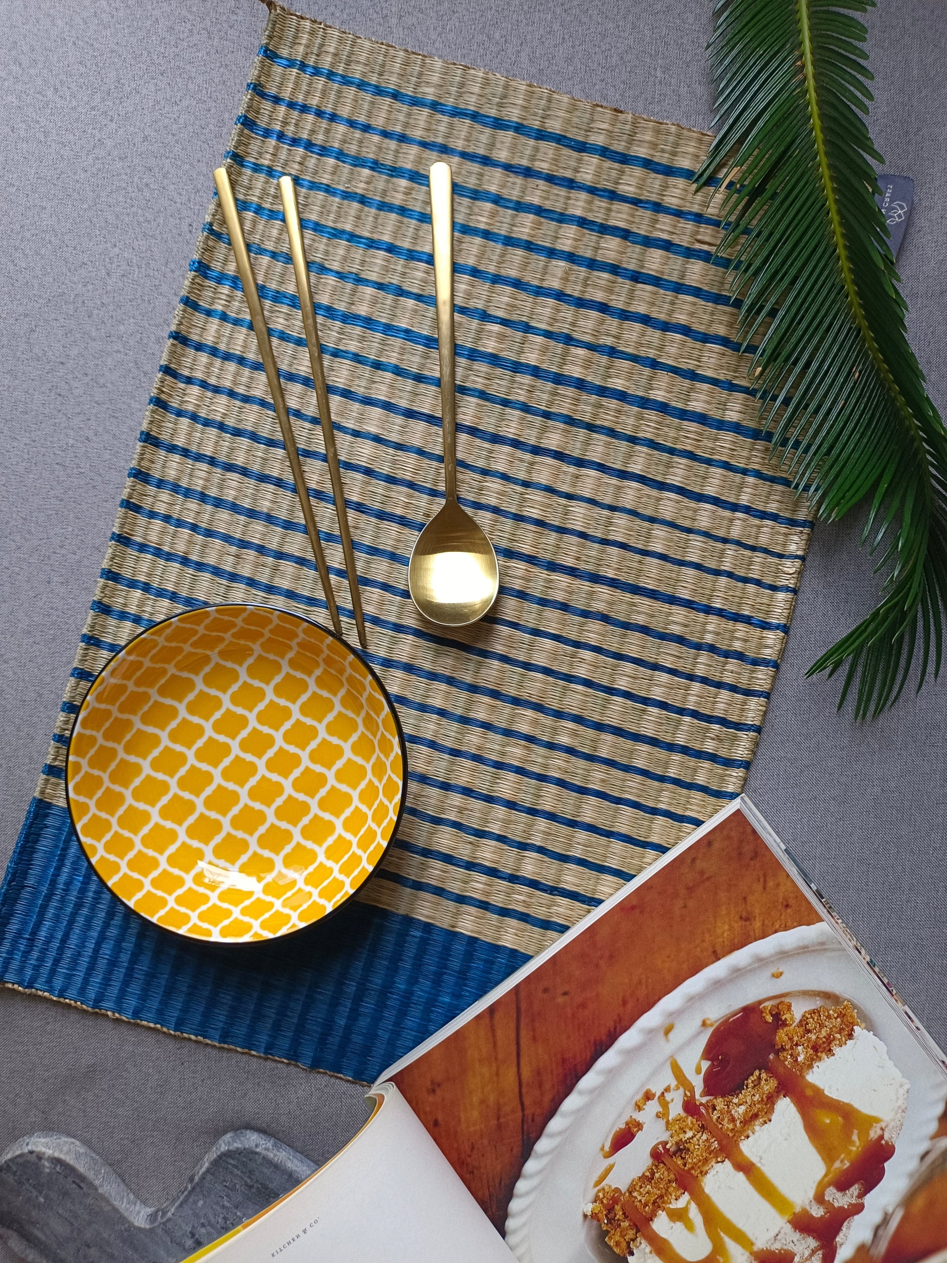 This natural mixing of Jute and Sedge is carefully handwoven by Thai artisans, pouring generations of local wisdom and craftsmanship. A modern take on traditional Thai weaves that adds cultural sophistication to any home. We use natural sedge and jute and redesign the colour and pattern in order to harmonize with modern lifestyle. This placemat set can be use with hot or cold drink. It easily match with special serving set for every home. It helps protecting from scratch, water stain on the table. The difference of mat colour would help identify individual plate from confusion.