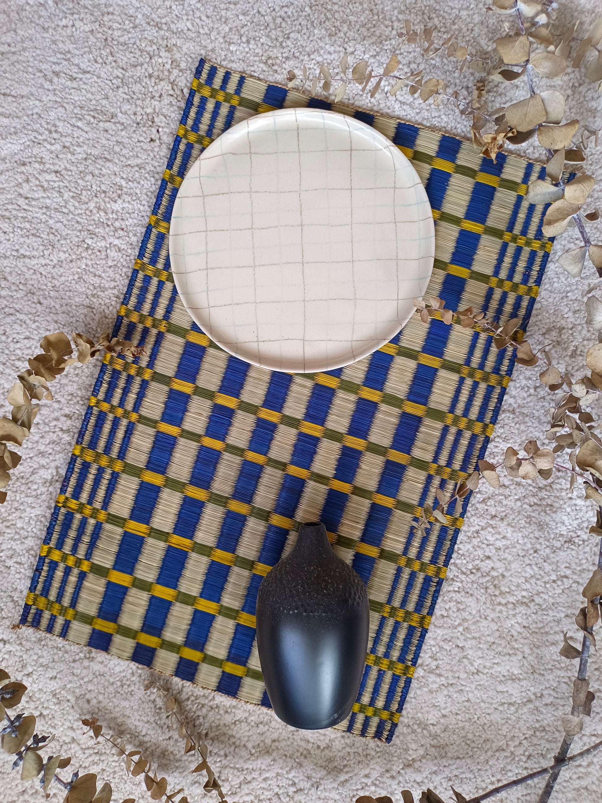 This natural mixing of Jute and Sedge is carefully handwoven by Thai artisans, pouring generations of local wisdom and craftsmanship. A modern take on traditional Thai weaves that adds cultural sophistication to any home. We use natural sedge and jute and redesign the colour and pattern in order to harmonize with modern lifestyle. This placemat set can be use with hot or cold drink. It easily match with special serving set for every home. It helps protecting from scratch, water stain on the table. The difference of mat colour would help identify individual plate from confusion.