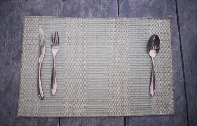 This natural mixing of Jute and Sedge is carefully handwoven by Thai artisans, pouring generations of local wisdom and craftsmanship. A modern take on traditional Thai weaves that adds cultural sophistication to any home. We use natural sedge and jute and redesign the colour and pattern in order to harmonize with modern lifestyle. This placemat set can be use with hot or cold drink. It easily match with special serving set for every home. It helps protecting from scratch, water stain on the table. The difference of mat colour would help identify individual plate from confusion.