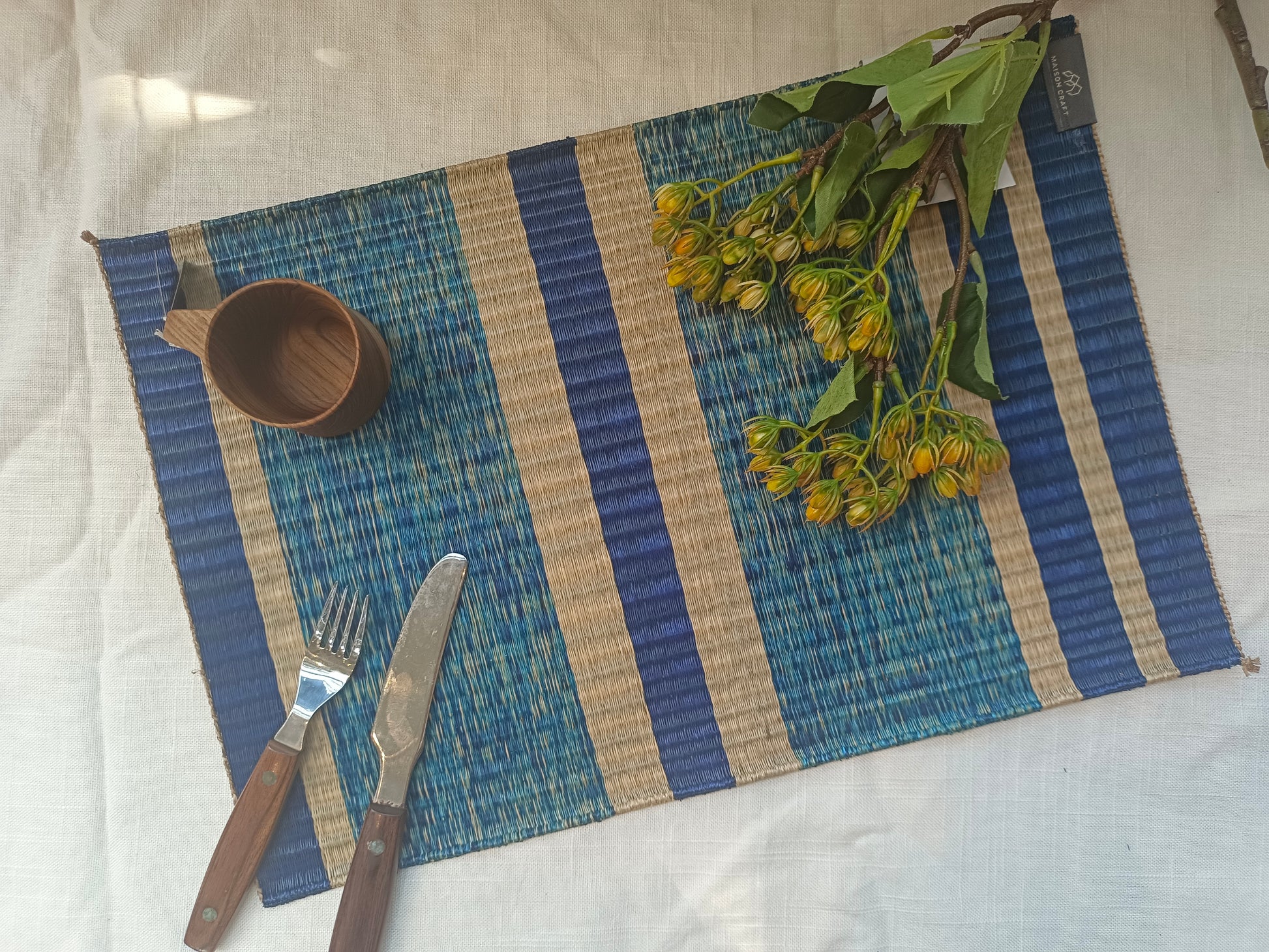 This natural mixing of Jute and Sedge is carefully handwoven by Thai artisans, pouring generations of local wisdom and craftsmanship. A modern take on traditional Thai weaves that adds cultural sophistication to any home. We use natural sedge and jute and redesign the colour and pattern in order to harmonize with modern lifestyle. This placemat set can be use with hot or cold drink. It easily match with special serving set for every home. It helps protecting from scratch, water stain on the table. The difference of mat colour would help identify individual plate from confusion.