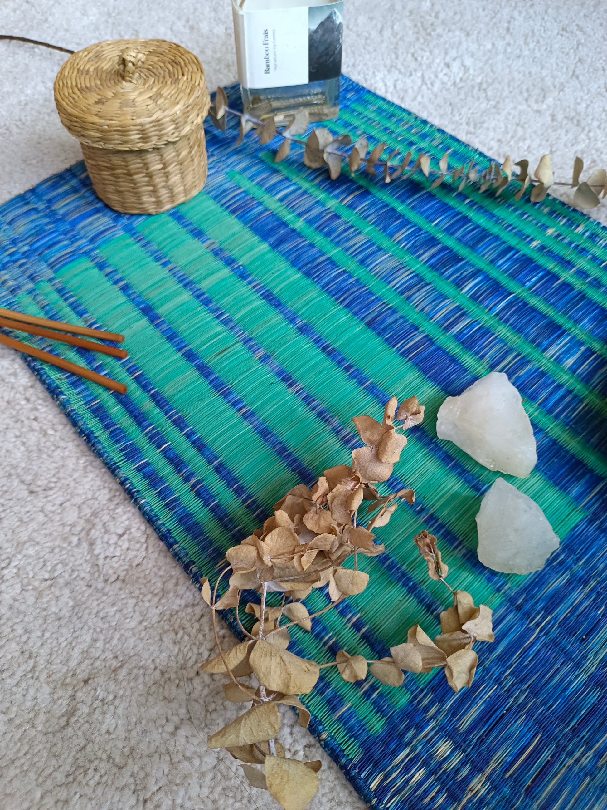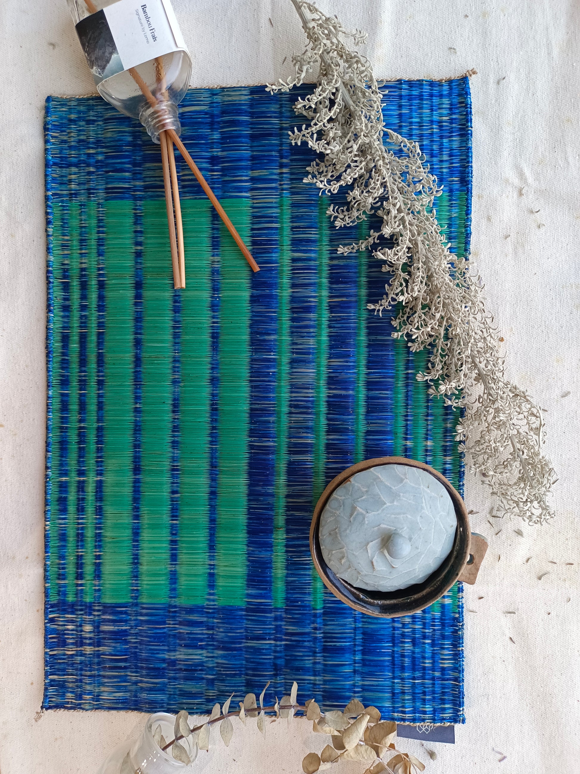 This natural mixing of Jute and Sedge is carefully handwoven by Thai artisans, pouring generations of local wisdom and craftsmanship. A modern take on traditional Thai weaves that adds cultural sophistication to any home. We use natural sedge and jute and redesign the colour and pattern in order to harmonize with modern lifestyle. This placemat set can be use with hot or cold drink. It easily match with special serving set for every home. It helps protecting from scratch, water stain on the table. The difference of mat colour would help identify individual plate from confusion.