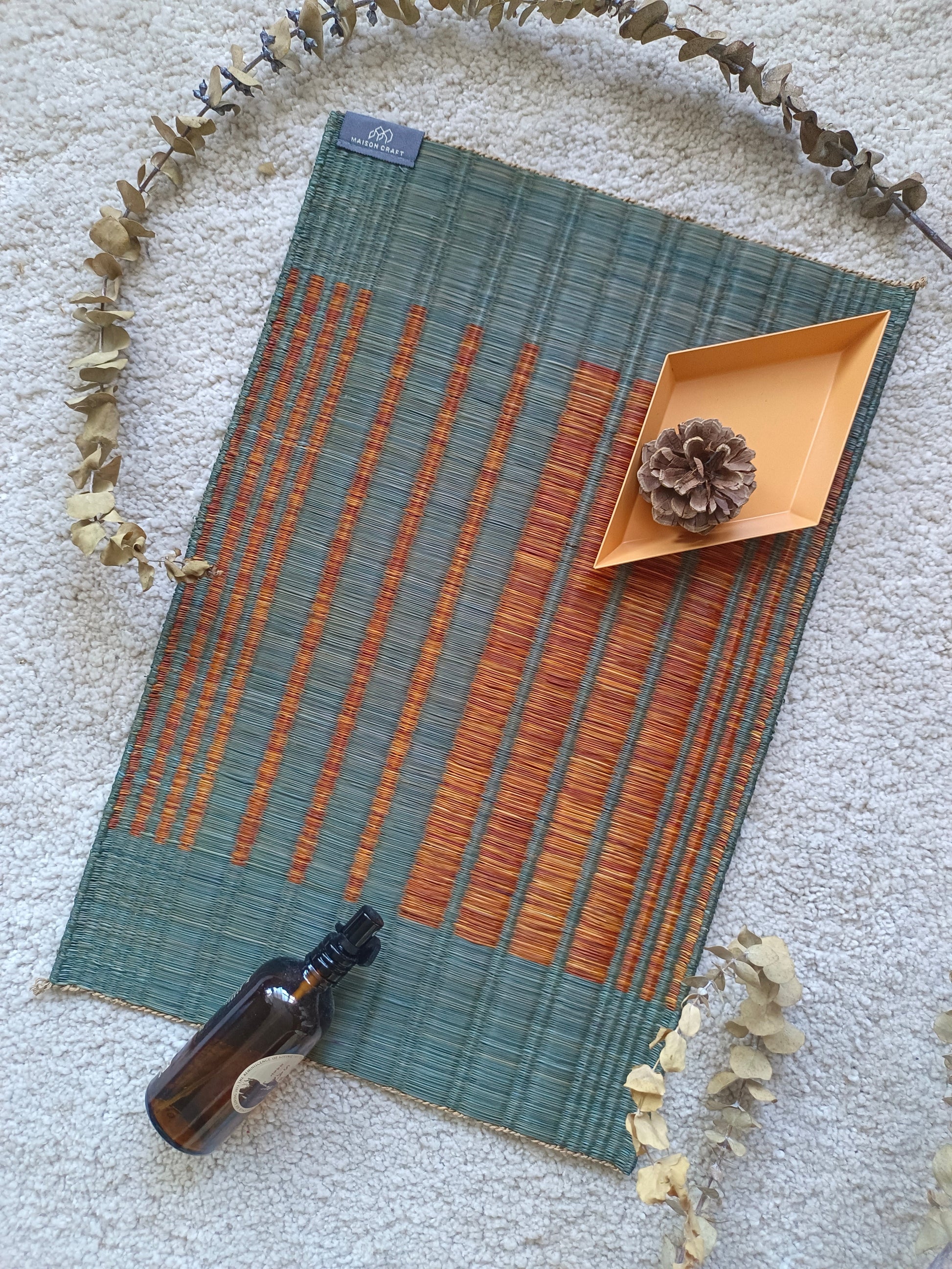 This natural mixing of Jute and Sedge is carefully handwoven by Thai artisans, pouring generations of local wisdom and craftsmanship. A modern take on traditional Thai weaves that adds cultural sophistication to any home. We use natural sedge and jute and redesign the colour and pattern in order to harmonize with modern lifestyle. This placemat set can be use with hot or cold drink. It easily match with special serving set for every home. It helps protecting from scratch, water stain on the table. The difference of mat colour would help identify individual plate from confusion.