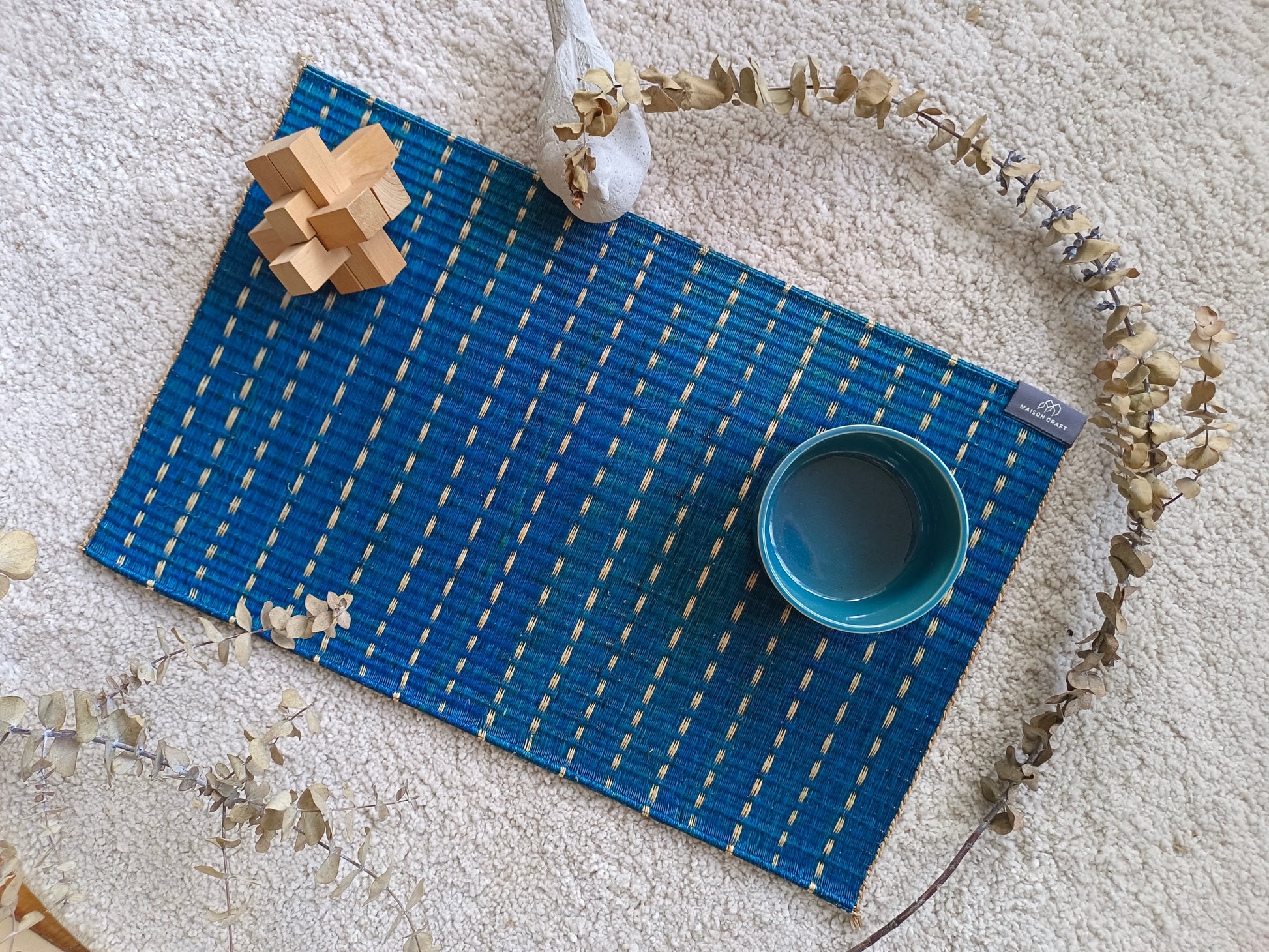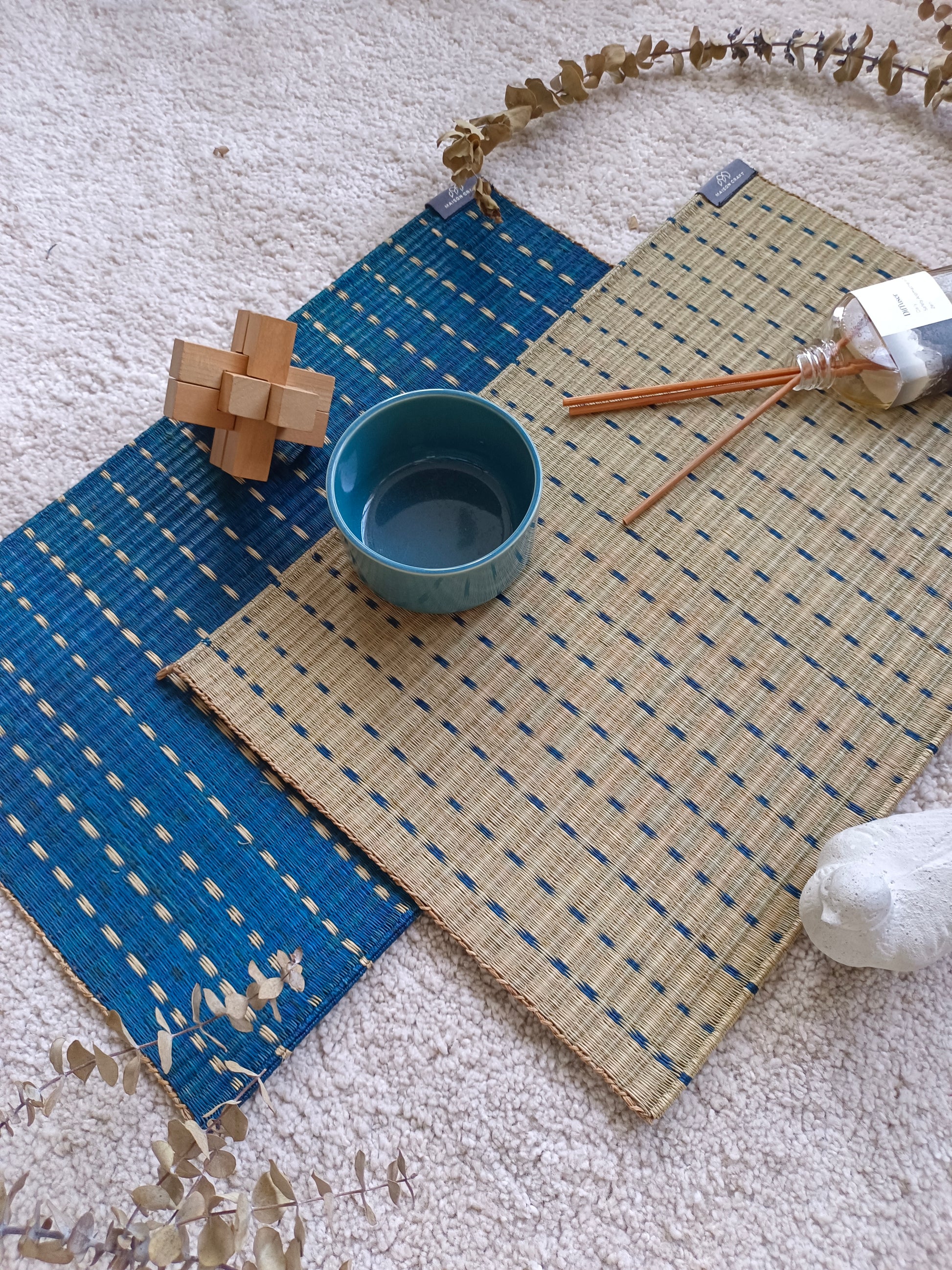This natural mixing of Jute and Sedge is carefully handwoven by Thai artisans, pouring generations of local wisdom and craftsmanship. A modern take on traditional Thai weaves that adds cultural sophistication to any home. We use natural sedge and jute and redesign the colour and pattern in order to harmonize with modern lifestyle. This placemat set can be use with hot or cold drink. It easily match with special serving set for every home. It helps protecting from scratch, water stain on the table. The difference of mat colour would help identify individual plate from confusion.