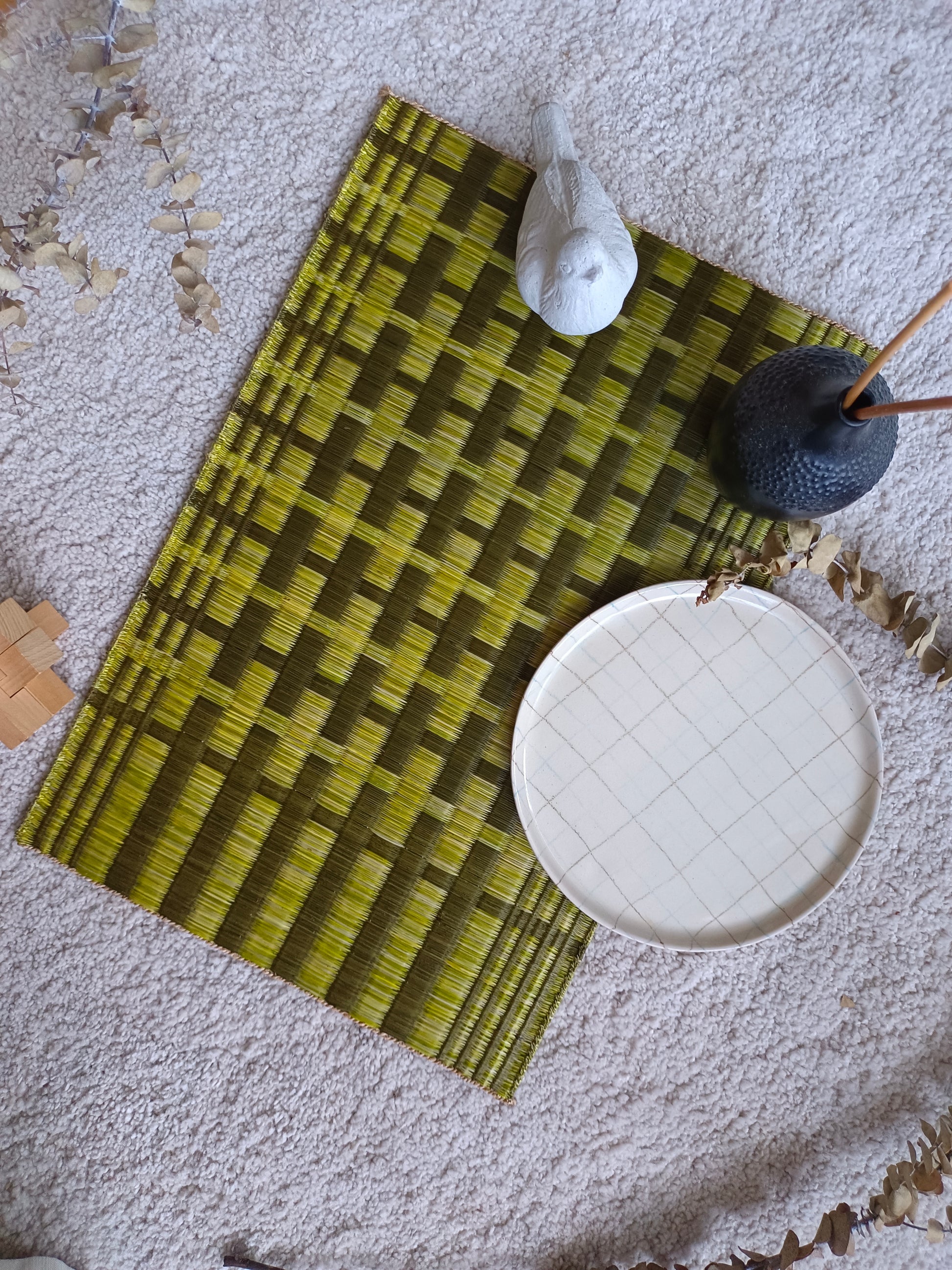 This natural mixing of Jute and Sedge is carefully handwoven by Thai artisans, pouring generations of local wisdom and craftsmanship. A modern take on traditional Thai weaves that adds cultural sophistication to any home. We use natural sedge and jute and redesign the colour and pattern in order to harmonize with modern lifestyle. This placemat set can be use with hot or cold drink. It easily match with special serving set for every home. It helps protecting from scratch, water stain on the table. The difference of mat colour would help identify individual plate from confusion.