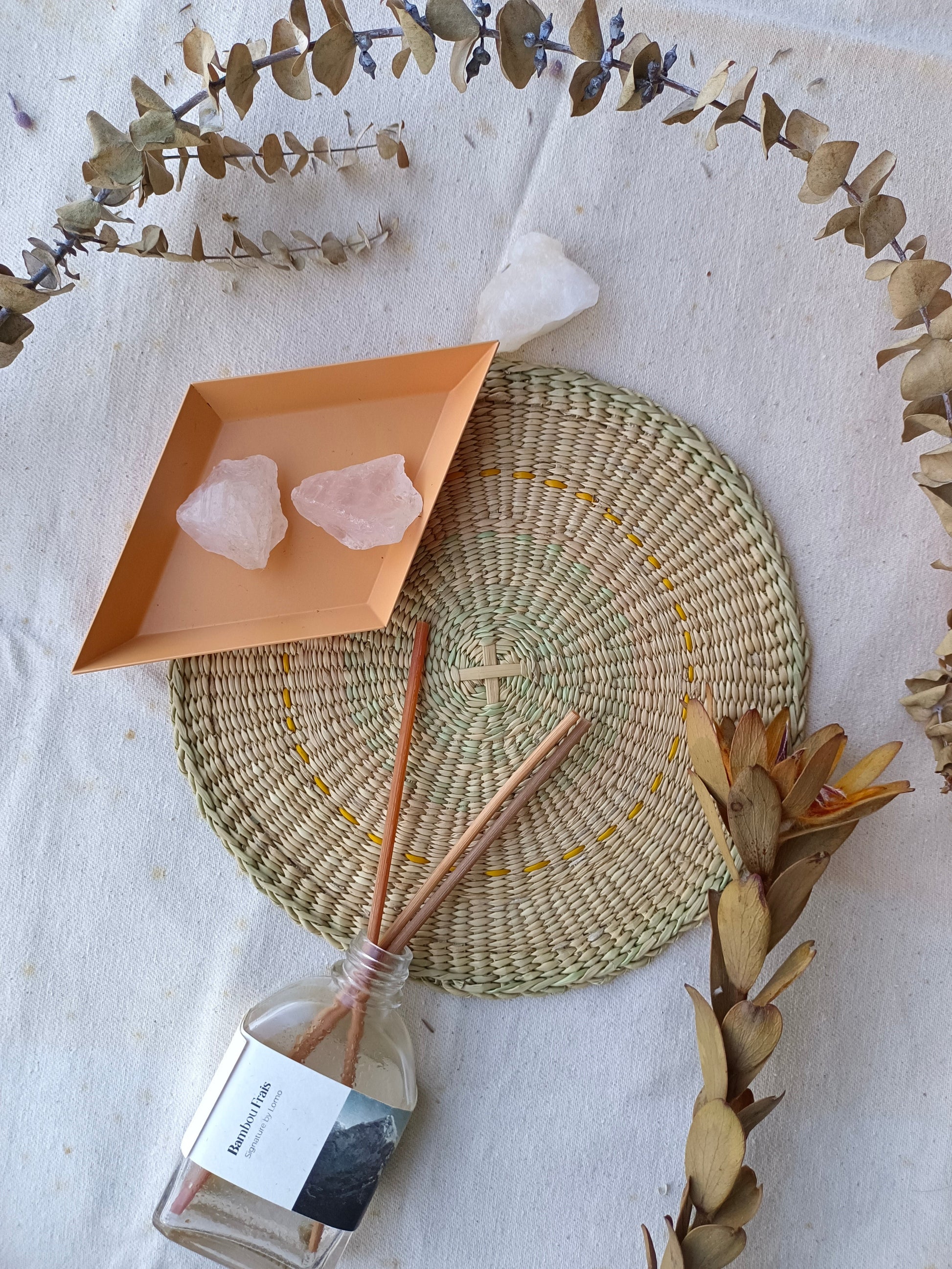 This natural sedge is carefully handwoven by Thai artisans, pouring generations of local wisdom and craftsmanship. A modern take on traditional Thai weaves that adds cultural sophistication to any home. We use natural sedge and redesign the colour and pattern in order to harmonize with modern lifestyle. This placemat set can be use with hot or cold drink. It easily match with special serving set for every home. It helps protecting from scratch, water stain on the table. The difference of mat colour would help identify individual plate from confusion.