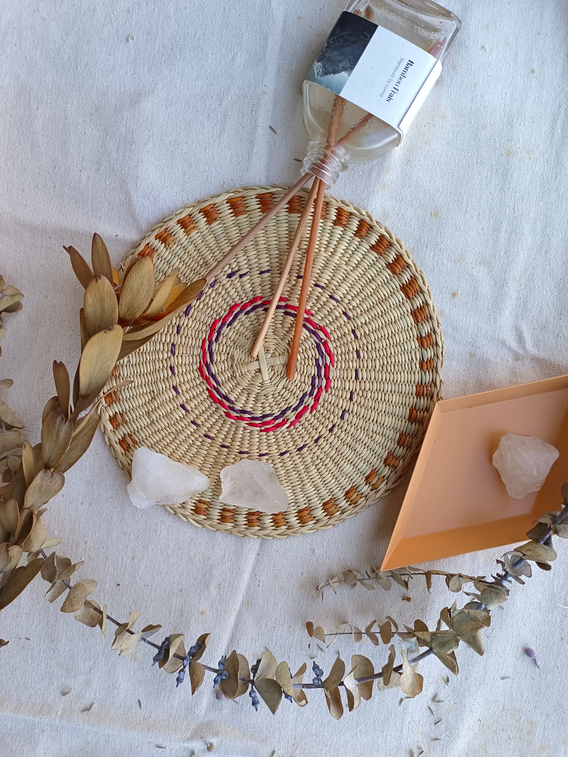 This natural Sedge is carefully handwoven by Thai artisans, pouring generations of local wisdom and craftsmanship. A modern take on traditional Thai weaves that adds cultural sophistication to any home. We use natural sedge and redesign the colour and pattern in order to harmonize with modern lifestyle. This placemat set can be use with hot or cold drink. It easily match with special serving set for every home. It helps protecting from scratch, water stain on the table. The difference of mat colour would help identify individual plate from confusion.