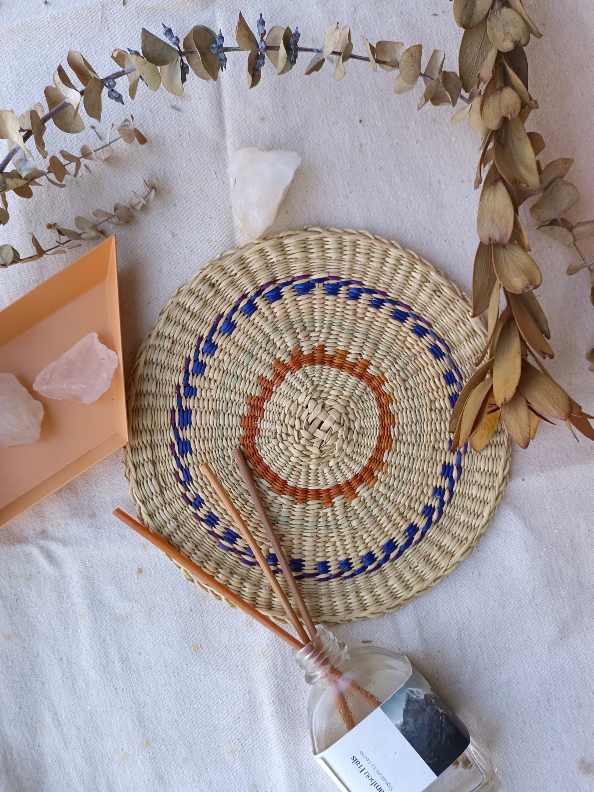 This natural sedge is carefully handwoven by Thai artisans, pouring generations of local wisdom and craftsmanship. A modern take on traditional Thai weaves that adds cultural sophistication to any home. We use natural sedge and redesign the colour and pattern in order to harmonize with modern lifestyle. This placemat set can be use with hot or cold drink. It easily match with special serving set for every home. It helps protecting from scratch, water stain on the table. The difference of mat colour would help identify individual plate from confusion.