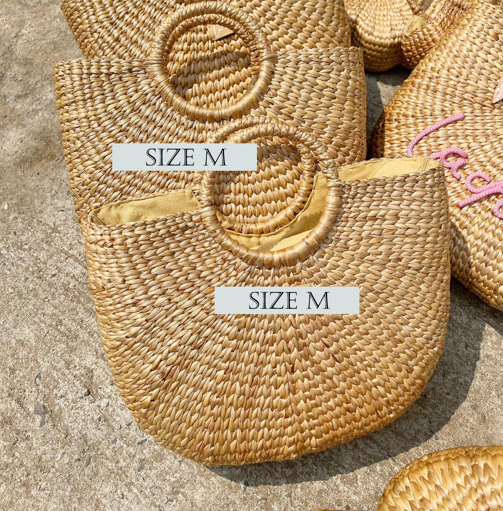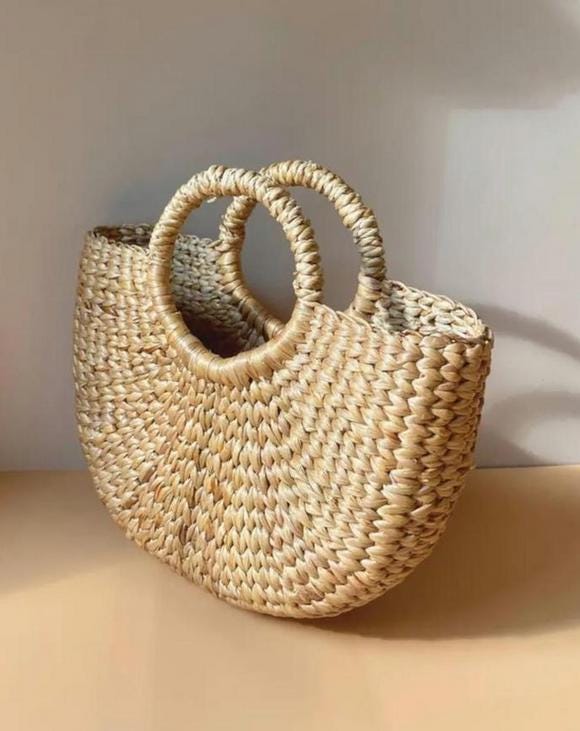 Semi-Circle Market Bag - Handmade Boho Water Hyacinth Tote Spring Shopper - Natural
