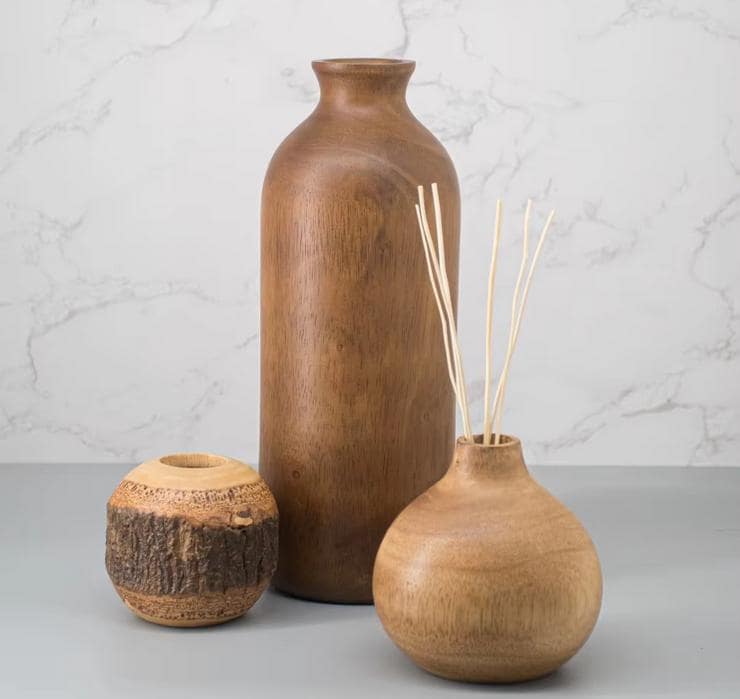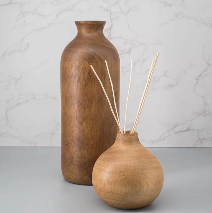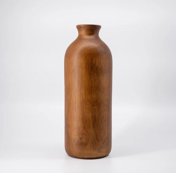 Wholesale 1/3PCS Natural Handmade Mango carved 10x3inch tall vase- zen wabisabi living-Milk Bottle Shape