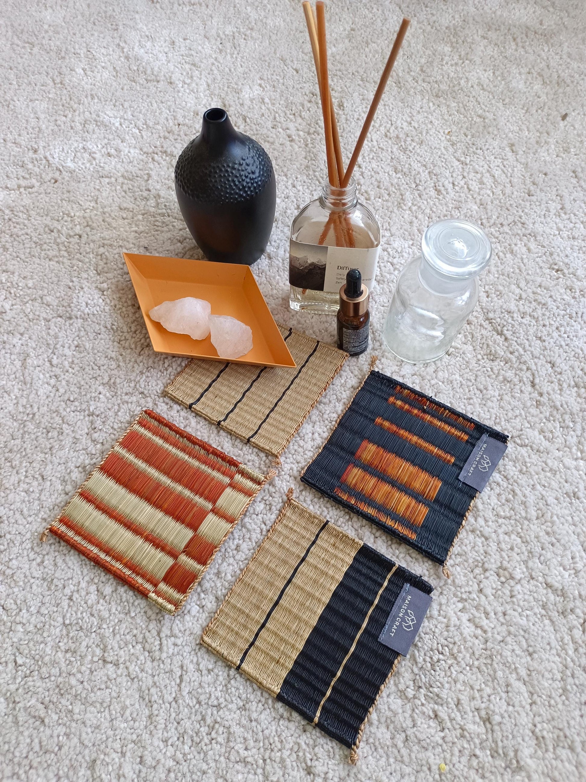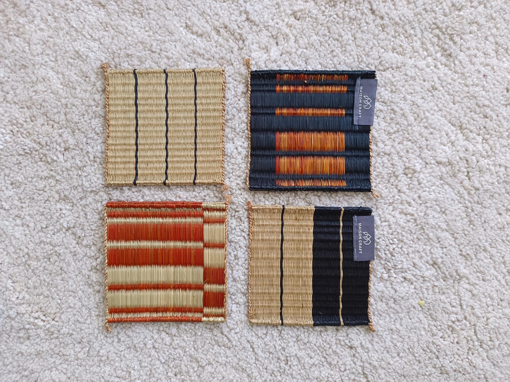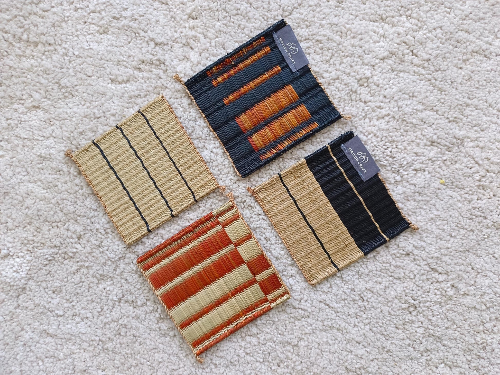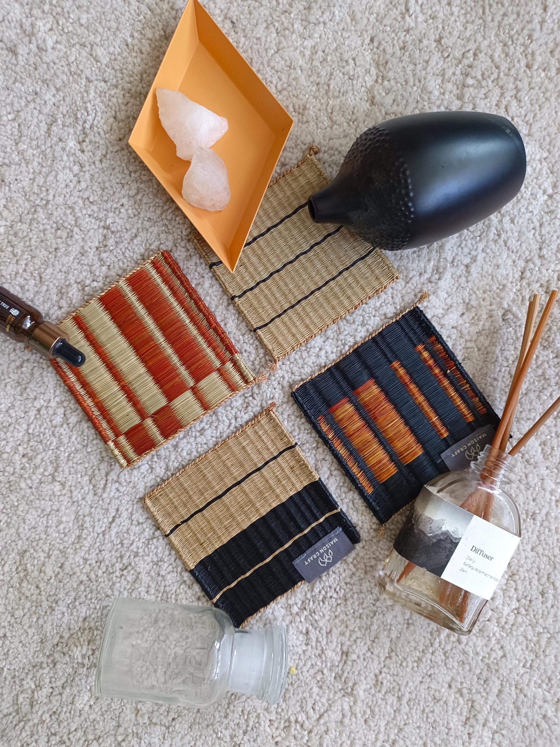 Wholesale set of 10/ 40 Orange black Handwoven Handmade Sedge Coaster 4"x4"- Stripe Tones Gift Set