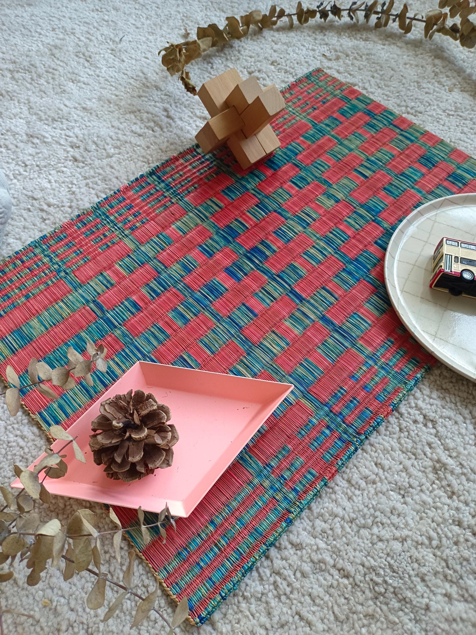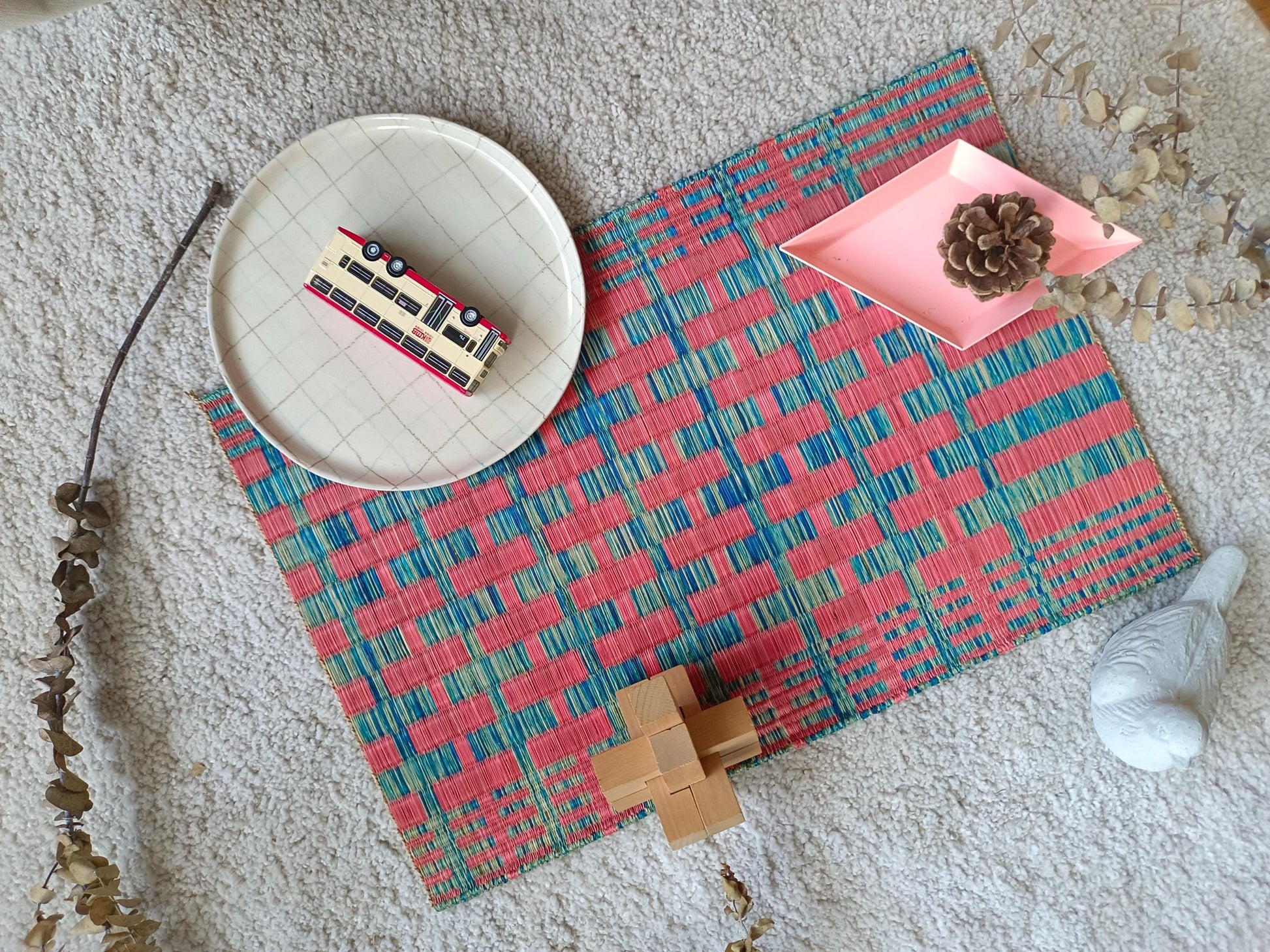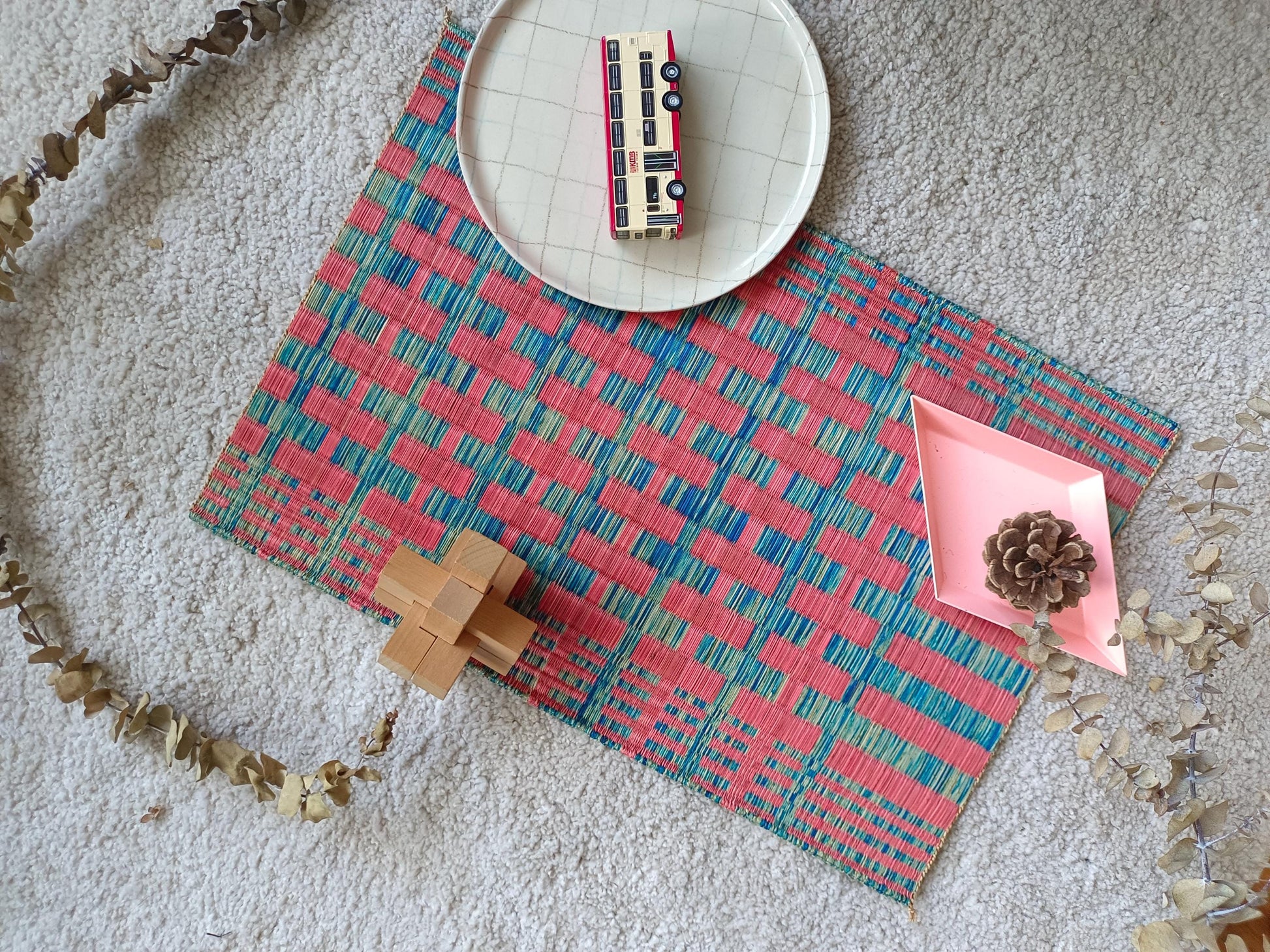 Wholesale set of 2/ 12 Torii pink blue Handwoven Eco-Friendly Woven Placemat - Midnight Stripe Rain 11.8x17.7 inches